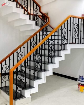 Cầu thang sắt tay vịn gỗ: 1,195,000 đ/m2