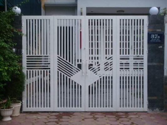Mẫu cửa cổng sắt 4 khổ 2 cánh mở phổ biến