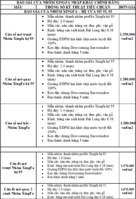 10. Mẫu cửa sổ nhôm Xingfa tem đỏ nhập khẩu